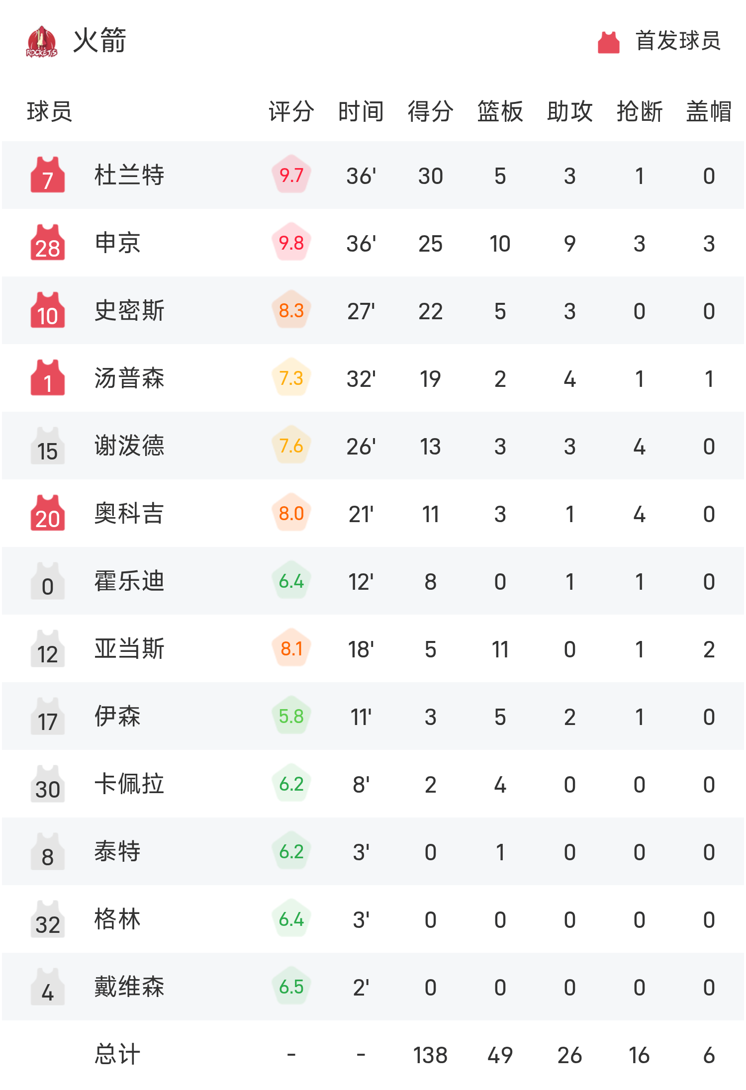 6686体育官网11月15日讯 25/26赛季NBA 常规赛 NBA杯分组赛,火箭对阵开拓者。双方全场战罢,火箭140-116战胜开拓者。杜兰特砍下全场最高的30分5板3助,率领火箭胜利取胜。