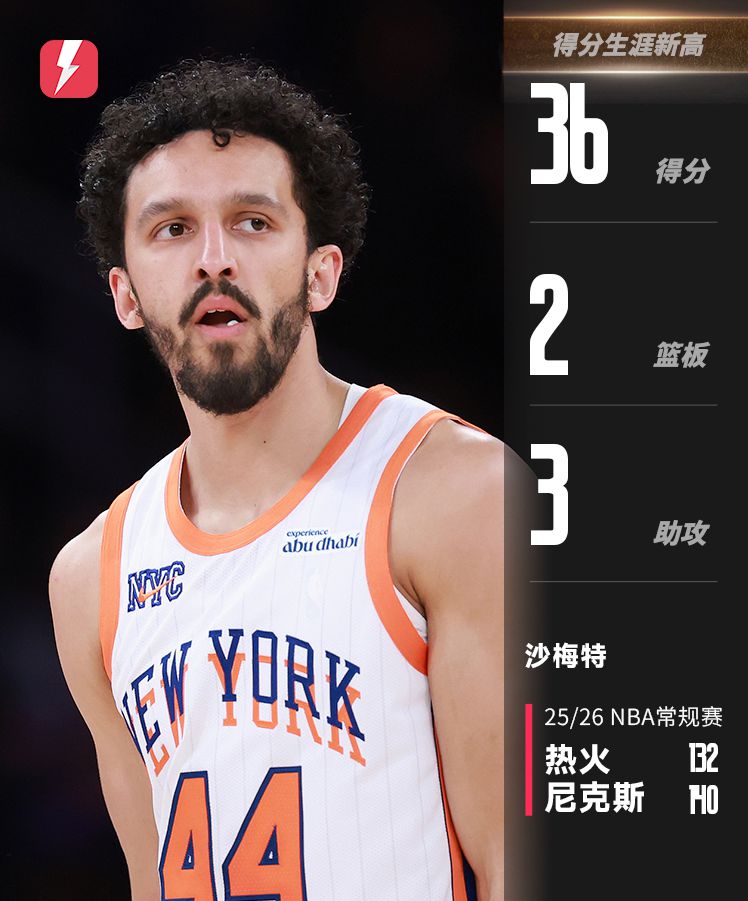 尼克斯奇兵组合创纪录!沙梅特36分&克拉克森24分率队取胜