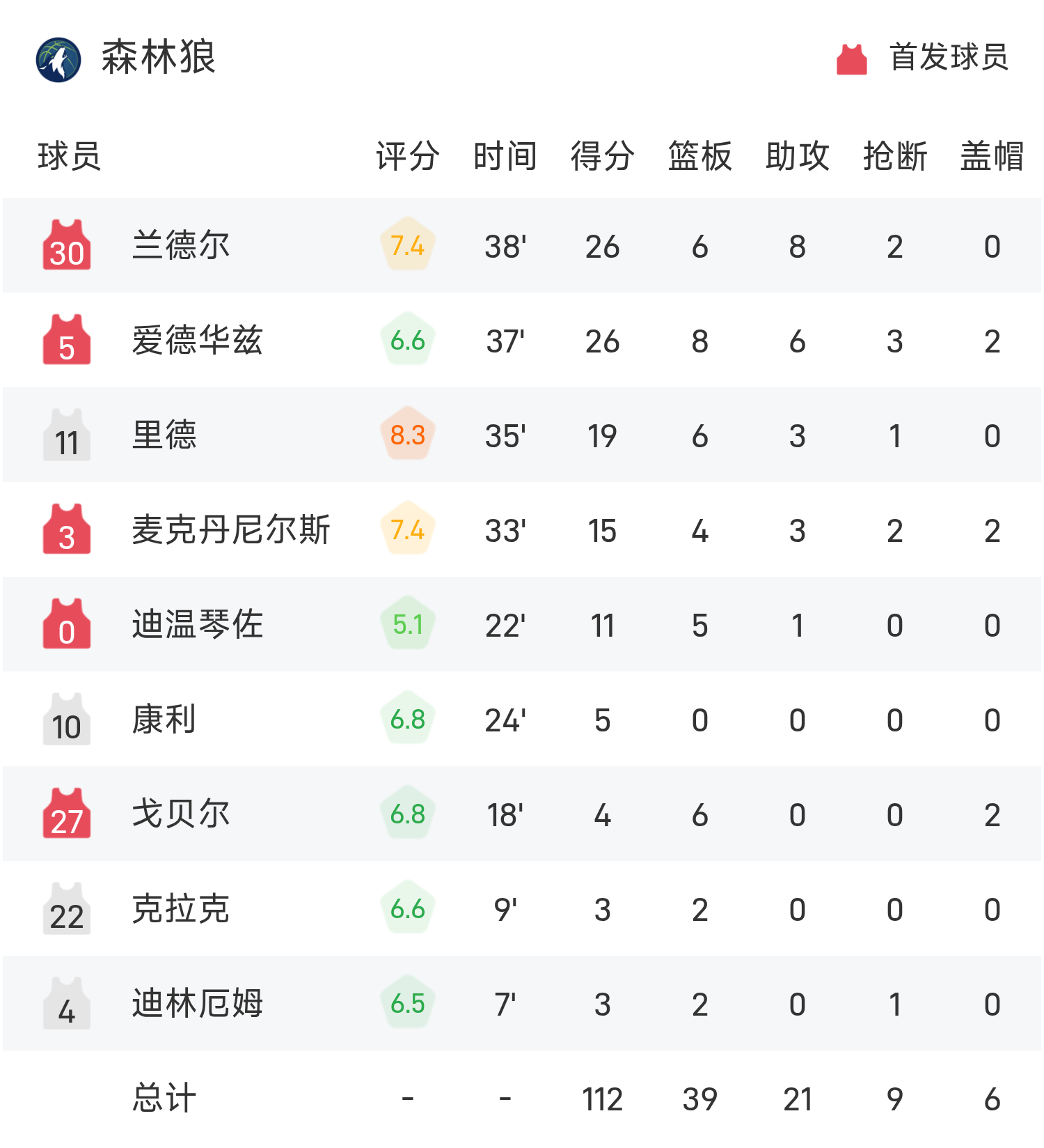 6686体育官网11月16日讯 25/26赛季NBA 常规赛,森林狼对阵掘金。双方全场战罢,森林狼112-123不敌掘金。约基奇砍下全场最高的27分12板11助,率领掘金胜利取胜。