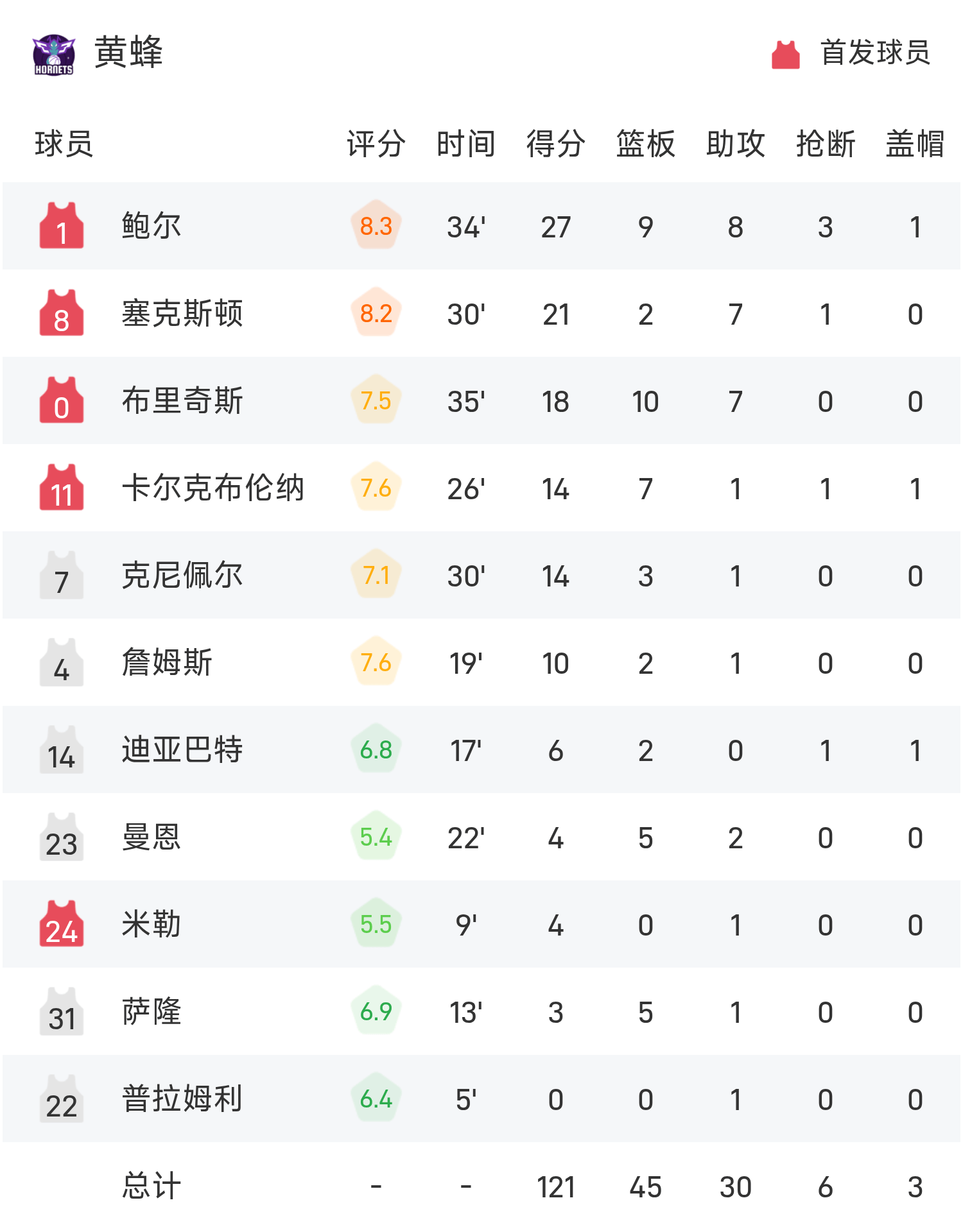 马克西得到28分6板9助率领76人胜利取胜,鲍尔砍下27分9板8助难阻败北局。