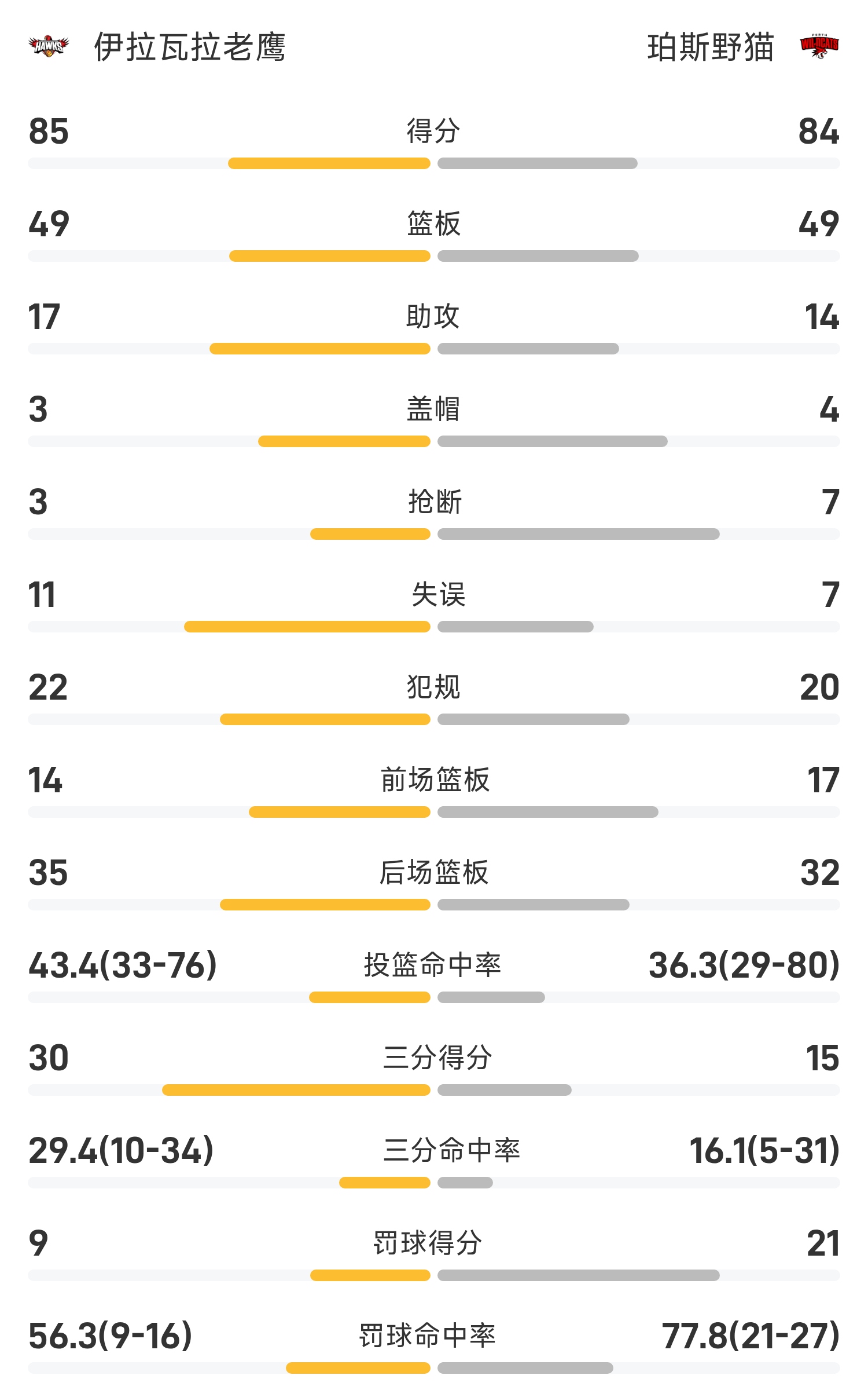 NBL战报:哈维24分8助,麦基罚篮最后一投,老鹰85-84险胜野猫