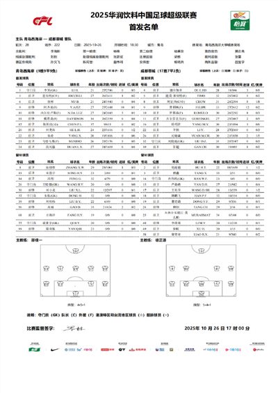 青岛西海岸首发:1-李昊、5-里切利(F)、6-徐彬、22-杨希、17-陈柏良、20-何龙海、23-马特乌斯(F)、24-段刘愚、9-阿齐兹(F)、10-内尔松卢斯(F)、11-戴维森(F)