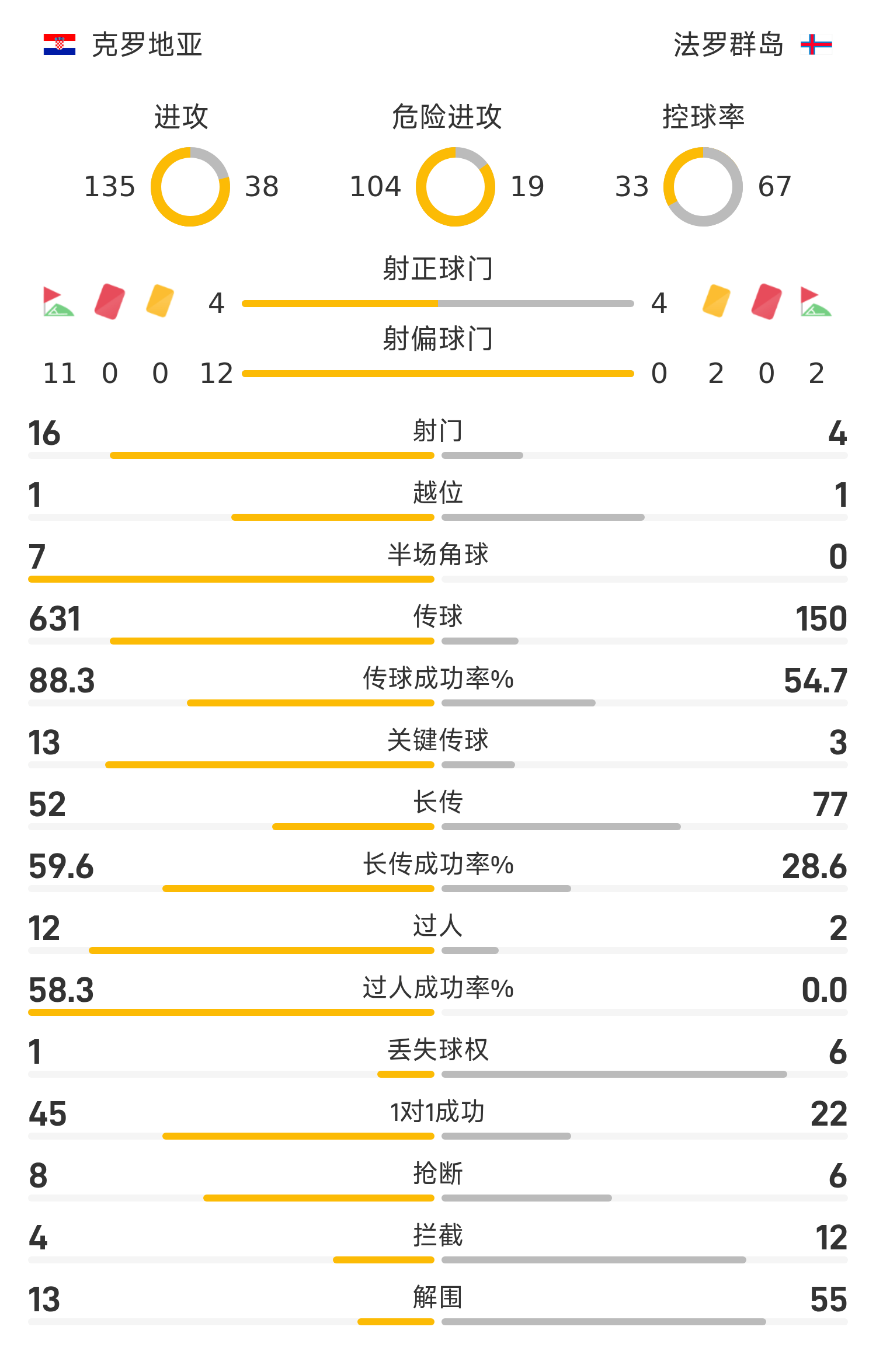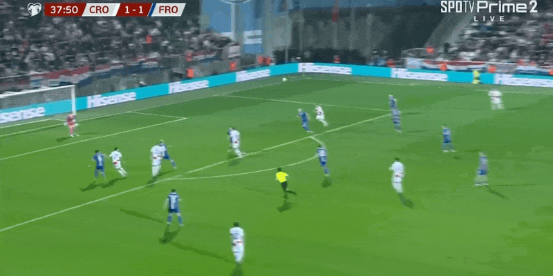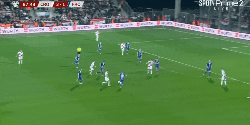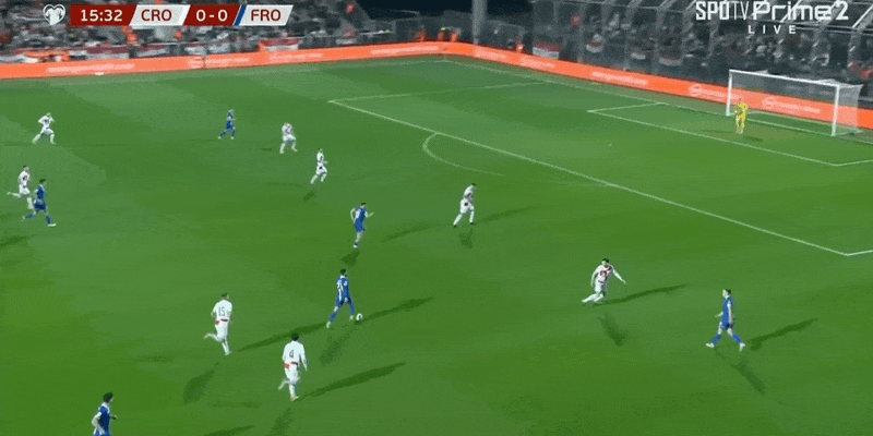 21’克罗地亚险些再度失守!法罗三秒区内无人盯防顶球吊射击中立柱弹出