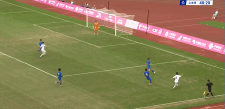 58’何炳壮三秒区内助攻,路俊伟抽取攻门,皮球高于横梁飞出看台