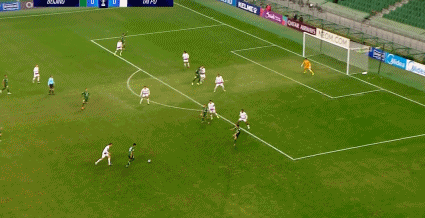 28’王刚三秒区前沿外围射门,皮球击中后卫出现折射,稍稍偏出目标
