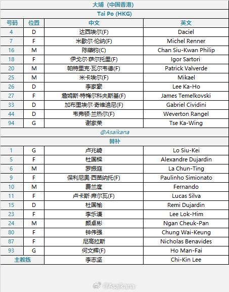 大埔首发:94-谢家荣、4-达西埃尔、33-奇维迪尼、44-韦弗顿、26-李家豪、16-陈肇均、20-瓦尔韦德、25-米凯尔、7-米歇尔·雷纳、18-萨托里、27-特梅科夫斯基