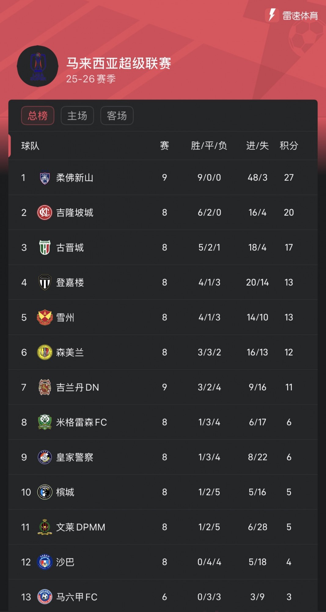 作为马来超的班霸,柔佛在本赛季9轮联赛事中取得全胜,攻入48球,仅丢3球,场均进球数超过5个。