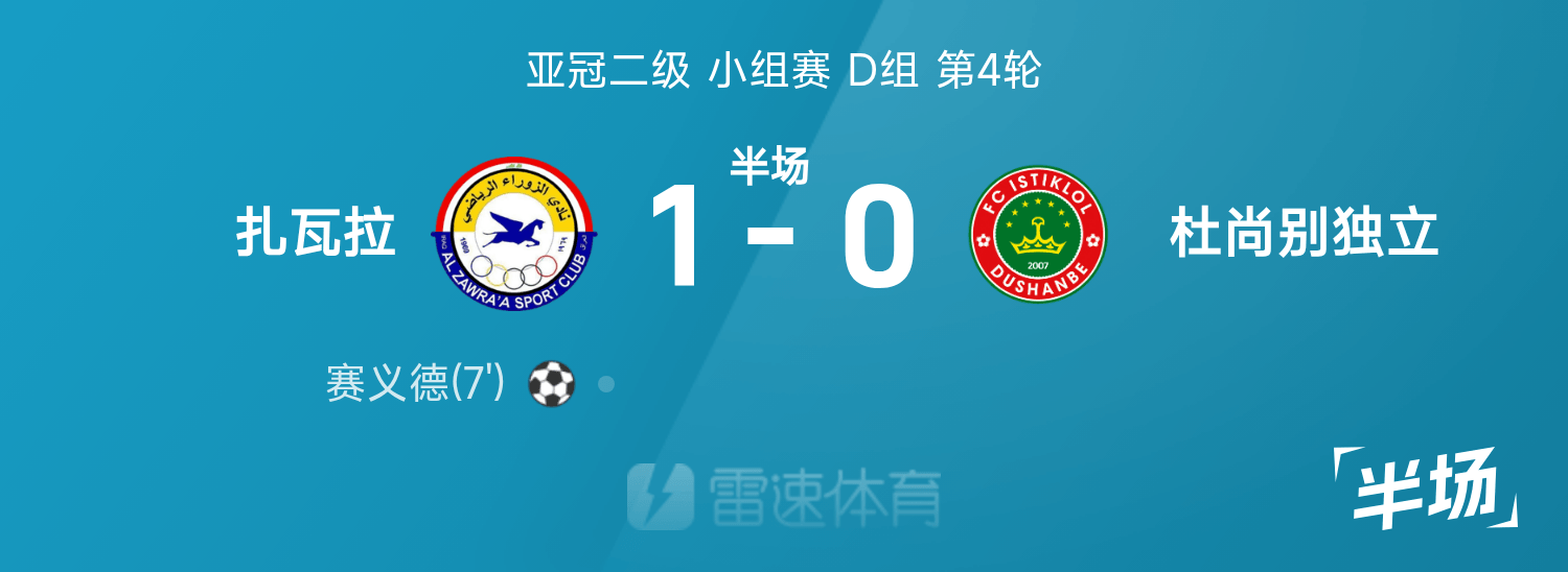 亚冠二级半场:赛义德闪击破门,扎瓦拉暂1-0杜尚别独立