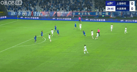45+1’申花逃过一劫!朱鹏宇跟进射门得手,因越位在先被吹无效